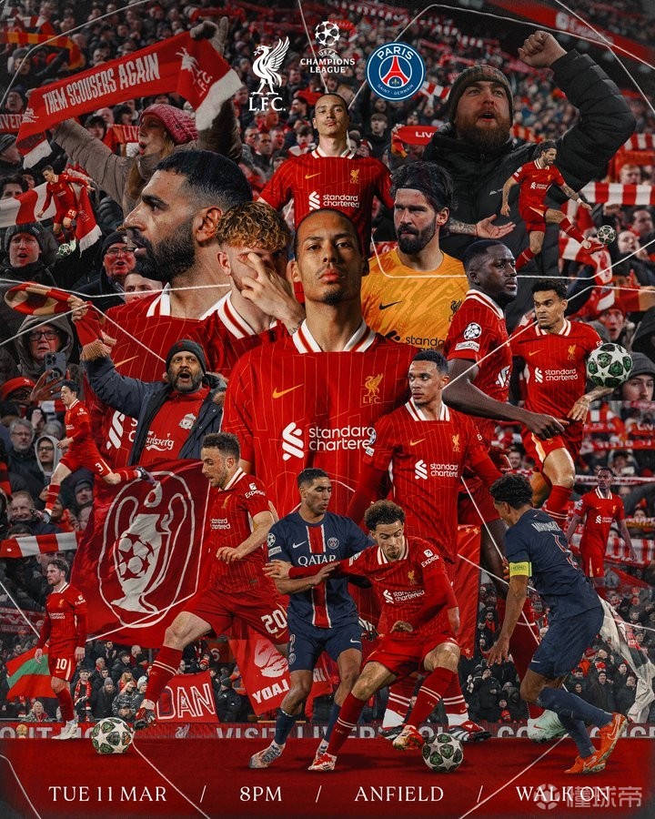 在社交媒体上发布的预热海报中,球队主要球星们个个神采奕奕,展现出昂扬的士气和信心。他们的目光坚定,仿佛在向所有对手宣示自己的实力和决心。这样的氛围无疑可以激励球队全体队员,激发他们的斗志和士气,为比赛做好充分准备。利物浦与巴黎圣日耳曼在18-19赛季的欧冠小组赛中曾有过交手。首回合比赛中,利物浦在主场3-2险胜对手,展现出了出色的比赛实力。而次回合,巴黎在主场2-1取得了胜利,这也让球队之间的对抗更加激烈而扣人心弦。这次在八分之一决赛中再度对决,双方实力相近,胜负难以预料,球迷们将迎来一场精彩绝伦的对决。利物浦的后防线包括范戴克、阿诺德等球员,他们需要在防守端稳固阵容,阻止巴黎的进攻。而萨拉赫、若塔等进攻球员则需要在前场积极输出,创造机会,将球送入对手球门。整个球队需要做好充分的战术准备,团结一致,争取取得出色的表现,为球迷们奉献一场难忘的比赛。本场比赛对于利物浦来说,不仅是一场八分之一决赛的比赛,更是一次检验球队实力和意志的机会。他们需要以最好的状态迎接比赛,尽全力争取胜利,向世界展现出利物浦的团结与拼搏精神。球迷们将为球队加油助威,共同期待着一场令人热血沸腾的比赛,无论胜负,利物浦的斗志与信念都将激励着整个球迷群体。
